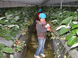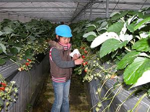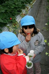 あいにくの小雨交じりのお天気のなかでしたが、元気よく、またハウスのなかで走り回ったりせず、行儀よくいちご狩りをしていってもらいました。 |