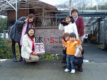 2月上旬 上の画像のご一行様と同じ日ですが、こちらは午後の比較的すいている時間帯に来ていただきました。 ゆっくり楽しめましたか? 当いちご園に来ていただくカップルの方たち(ご家族連れの方もですが)は、ほんと雰囲気のいいかたが多いです。 なんだかこちらも嬉しくなっちゃいます。 |